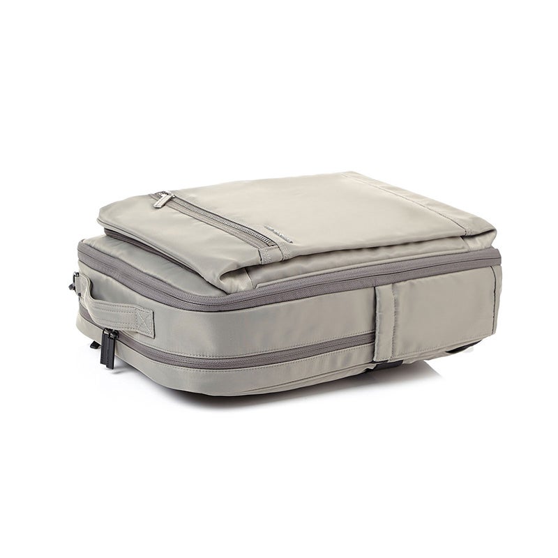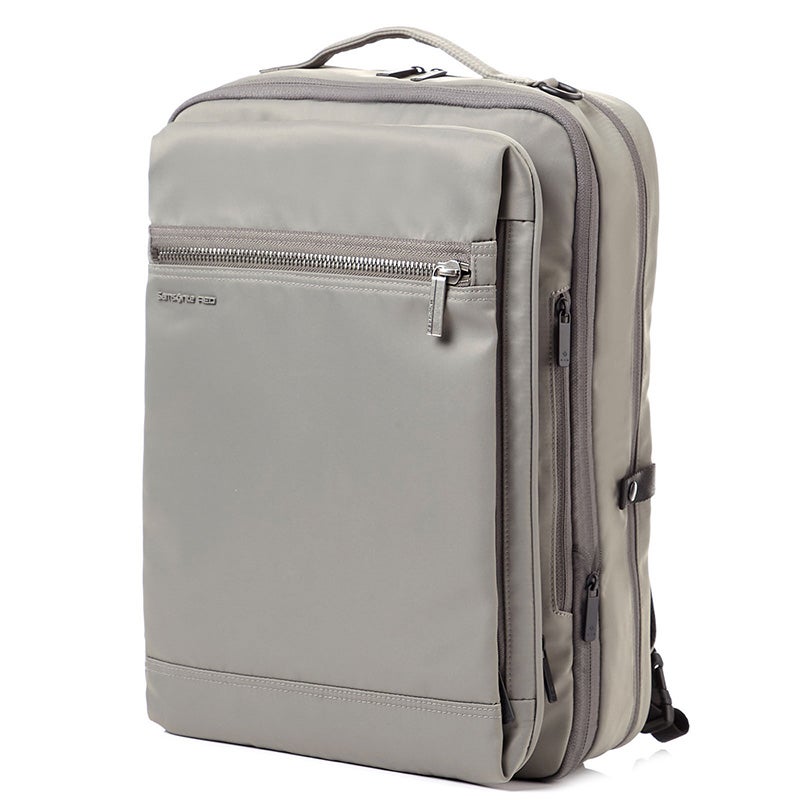 • Front and back zippered pockets with hidden top handles that can be converted into a briefcase style